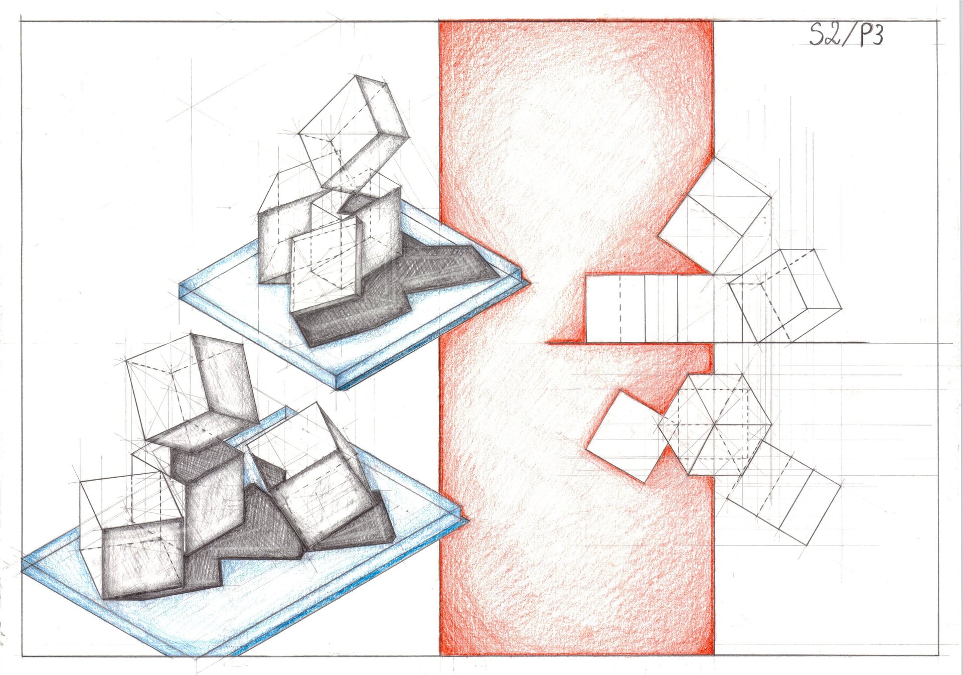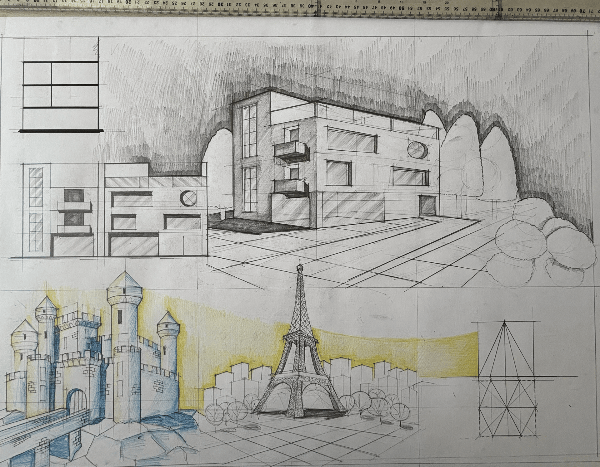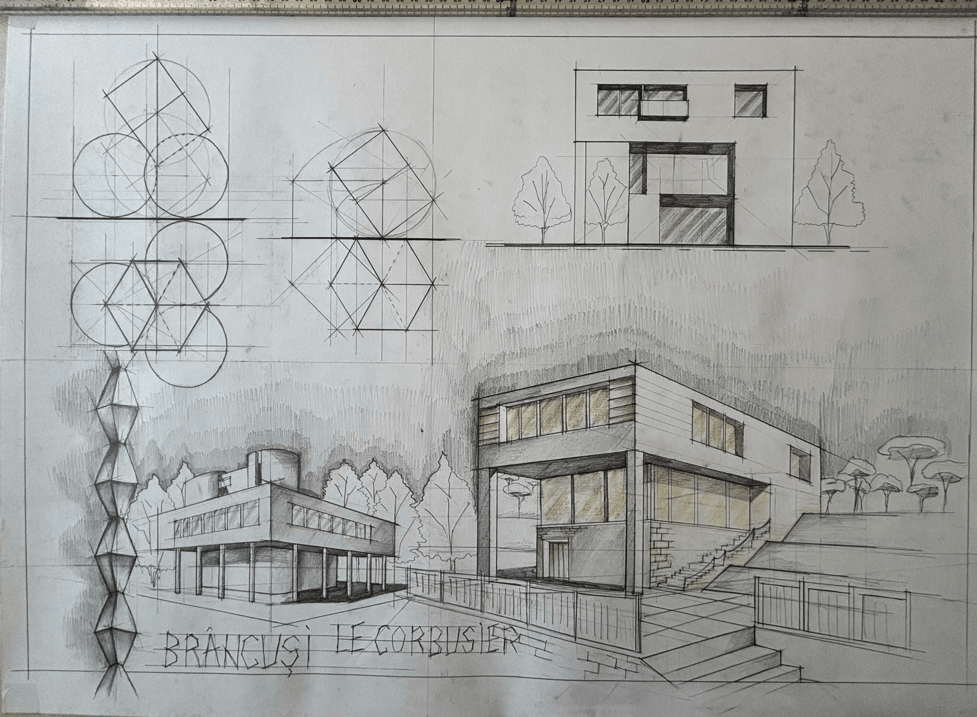 De la o simpla planșetă cu ceva instrumente pe care nu le mai folosisem până la pregătirea de arhitectura și cu multa speranță am decis să mă las purtat de val și de cursul procesului, chiar dacă de multe ori nu știam ce desenam. Țin să menționez că tot procesul meu de a învață desen a pornit de la 0, iar pentru mine era o călătorie cu miza: totul sau nimic.